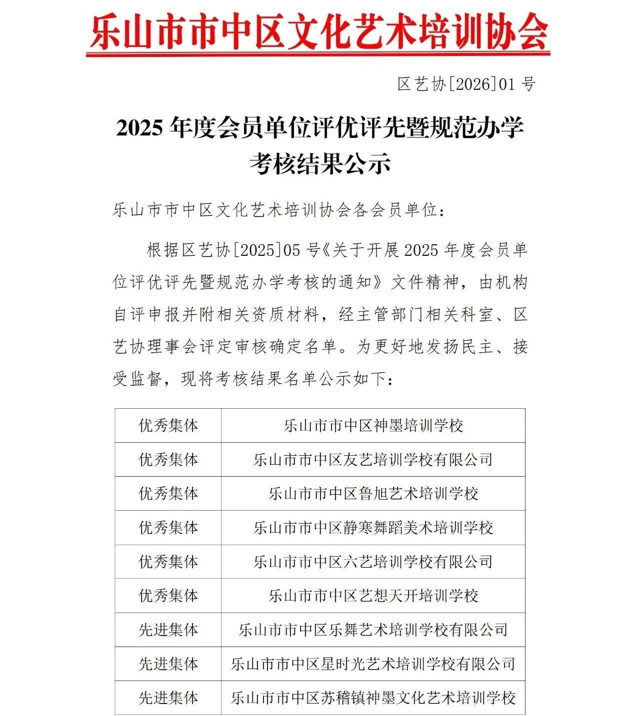 2025年度会员单位评优评先暨规范办学考核结果公示