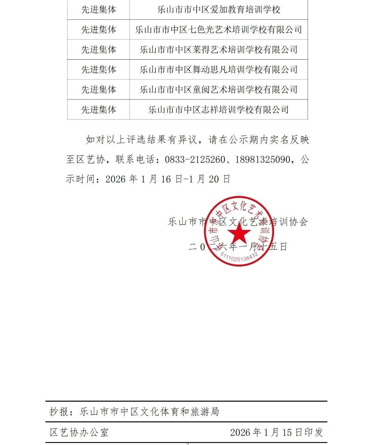 信息来源:乐山市市中区文化艺术培训协会